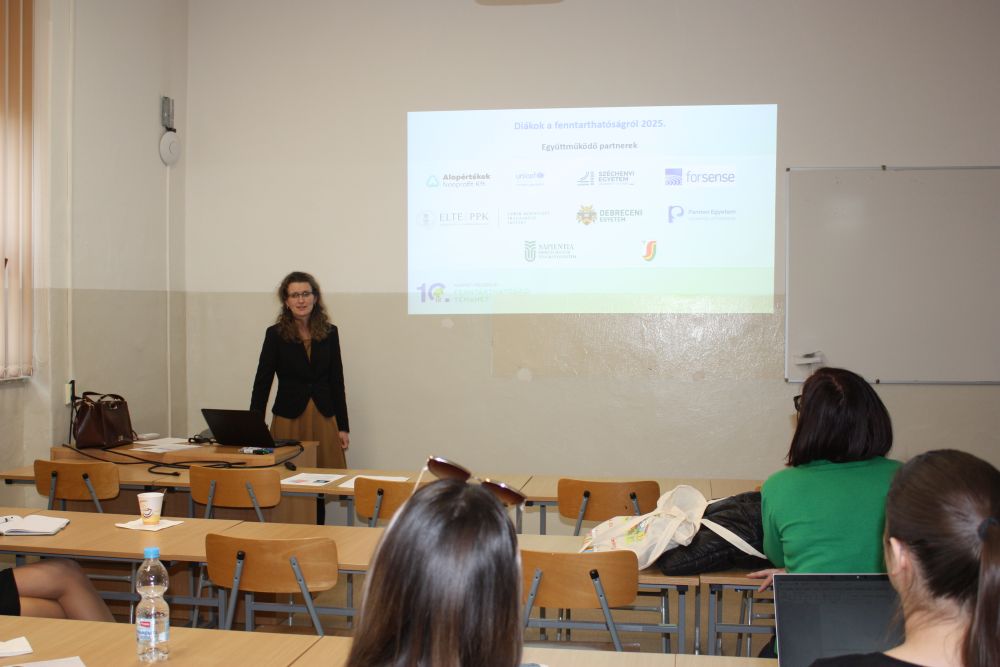 2025. március 28-án szakmai pedagógus-továbbképzésre került sor a Selye János Egyetemen. Kémia Tanszék által szervezett rendezvényen a régió iskoláinak 20 tanára és leendő tanára vett részt. A rendezvény szorosan kapcsolódik a Magyarországon évek óta megrendezésre kerülő Fenntarthatósági Témahéthez, melynek célja a fenntarthatóság üzenetének elterjesztése az iskolai keretek között, valamint a diákok érzékenyítése a fenntarthatóság fontosságára. A szakmai szemináriumon a pedagógusok és egyetemi hallgatók Szarka Katalin előadásában megismerkedtek a Fenntarthatósági Témahét alapmodelljével és az idei, 10. Kárpát-medencei Fenntarthatósági Témahét kiemelt témáival, amelyek a talaj és biodiverzitás, a zöldenergia-források, a mesterséges intelligencia, a hulladék és a tudatos fogyasztás. Az adott témákban ötleteket kaptak az oktatók a tanórákba beépíthető tevékenységekre és megvalósítható projektekre, pályázatokra és versenyekre Kotiers Évától, a hetényi Tarczy Lajos Magyar Tanítási Nyelvű Alapiskola pedagógusától, és a képzőktől Szarka Katalintól, a Selye János Egyetem Kémia Tanszékének docensétől és Hengerics Szabó Alexandrától, a Selye János Egyetem Kémia Tanszékének kutatójától. A képzés megvalósítását az Alapértékek Nonprofit Kft. támogatta. Idén először, a komáromi helyszíntől távolabb eső felvidéki iskolák oktatói számára a képzés március 24-én online is megrendezésre került, amelyen 7 pedagógus vett részt.