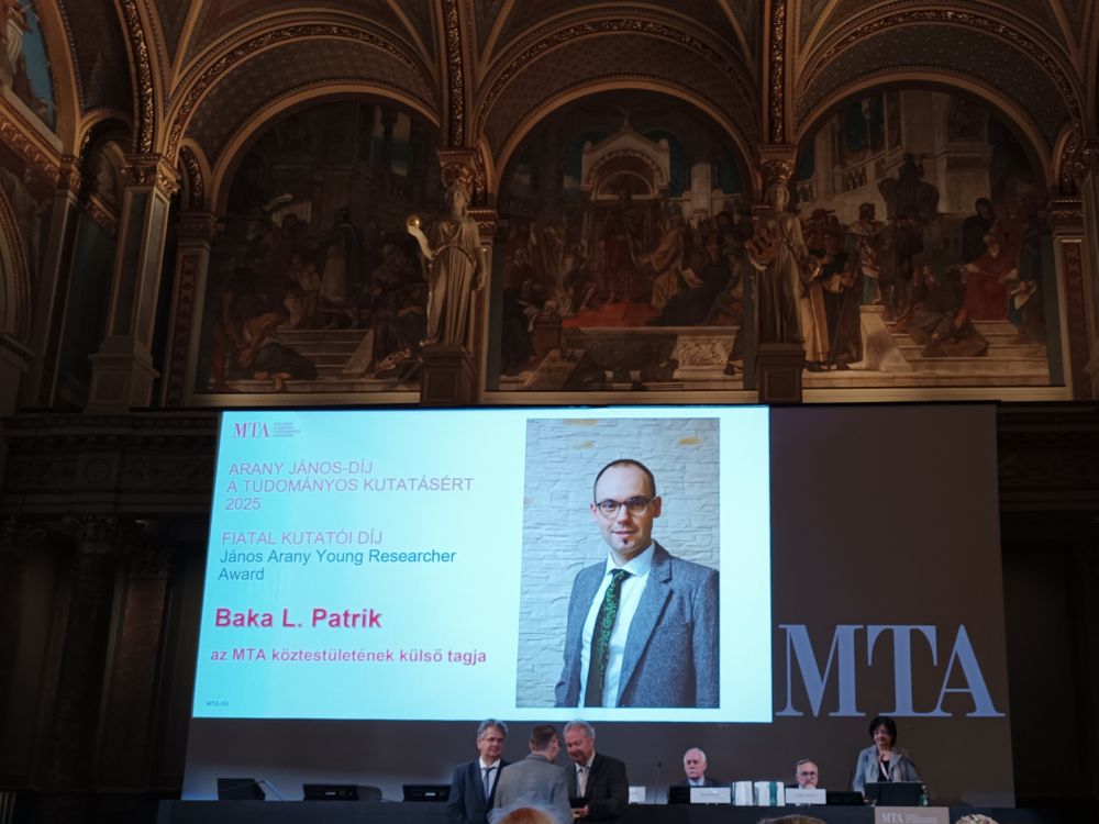 A 2025-ös évben egyetemünk oktatója, Baka L. Patrik tanár úr vehette át a Magyar Tudományos Akadémia Arany János Fiatal Kutatói Díját.