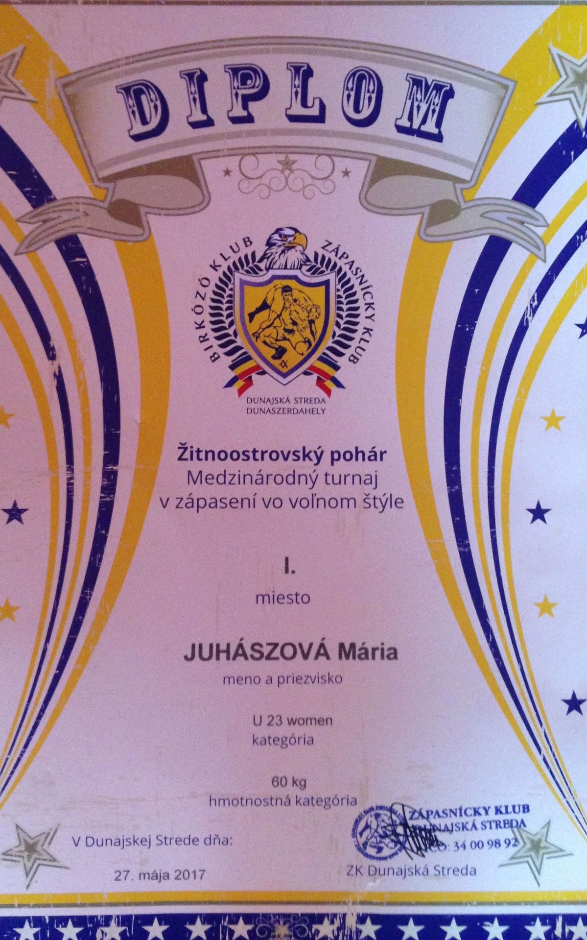 27. mája 2017 sa konal ,,Žitnoostrovský pohár : Medzinárodný turnaj v zápasení vo voľnom štýle“, kde študentka Pedagogickej fakulty UJS, Mária Juhászová (1. roč., PPdb) sa umiestnila na 1. mieste v zápasení vo voľnom štýle. Gratulujeme!