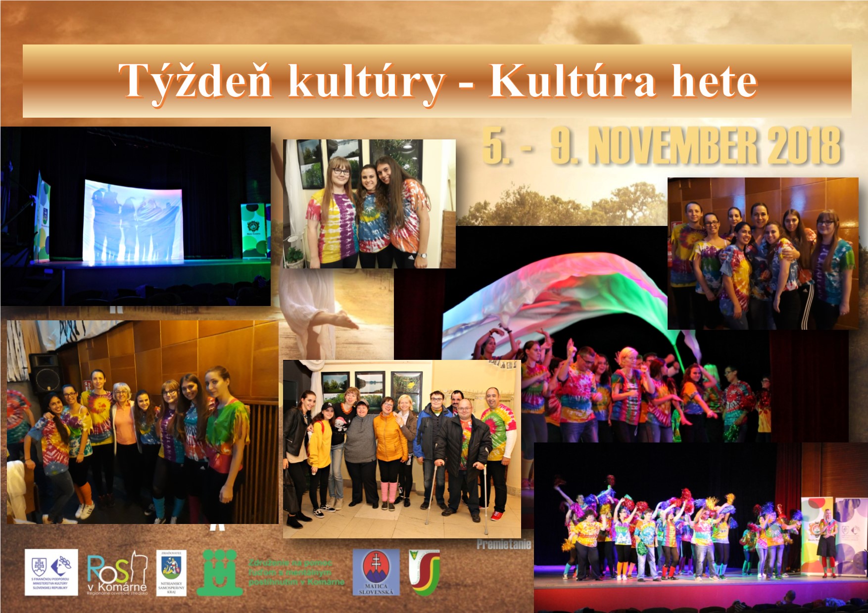 Dátum podujatia: 9.11.2018. Téma podujatia: Projekt 3. ročník Týždeň kultúry – Na ceste s nami... Účastníci podujatia: Študenti Pedagogickej fakulty Univerzity J. Selyeho, odbor Predškolskej a elementárnej pedagogiky, Regionálne osvetové stredisko v Komárne, Združenie na pomoc ľuďom s mentálnym postihnutím. Choreografkou tanca bola Andrea Hodeková, spoločné vystúpenie sa uskutočnilo 9. novembra. Pochvala patrí študentkám z tretieho ročníka Predškolskej a elementárnej pedagogiky: Jennifer Vázquez Duarte, z druhého ročníka: Fruzsina Póta, Petra Cseh, Sztela Járosi, a z prvého ročníka: Mónike Lavovej a Betti Kesziovej.