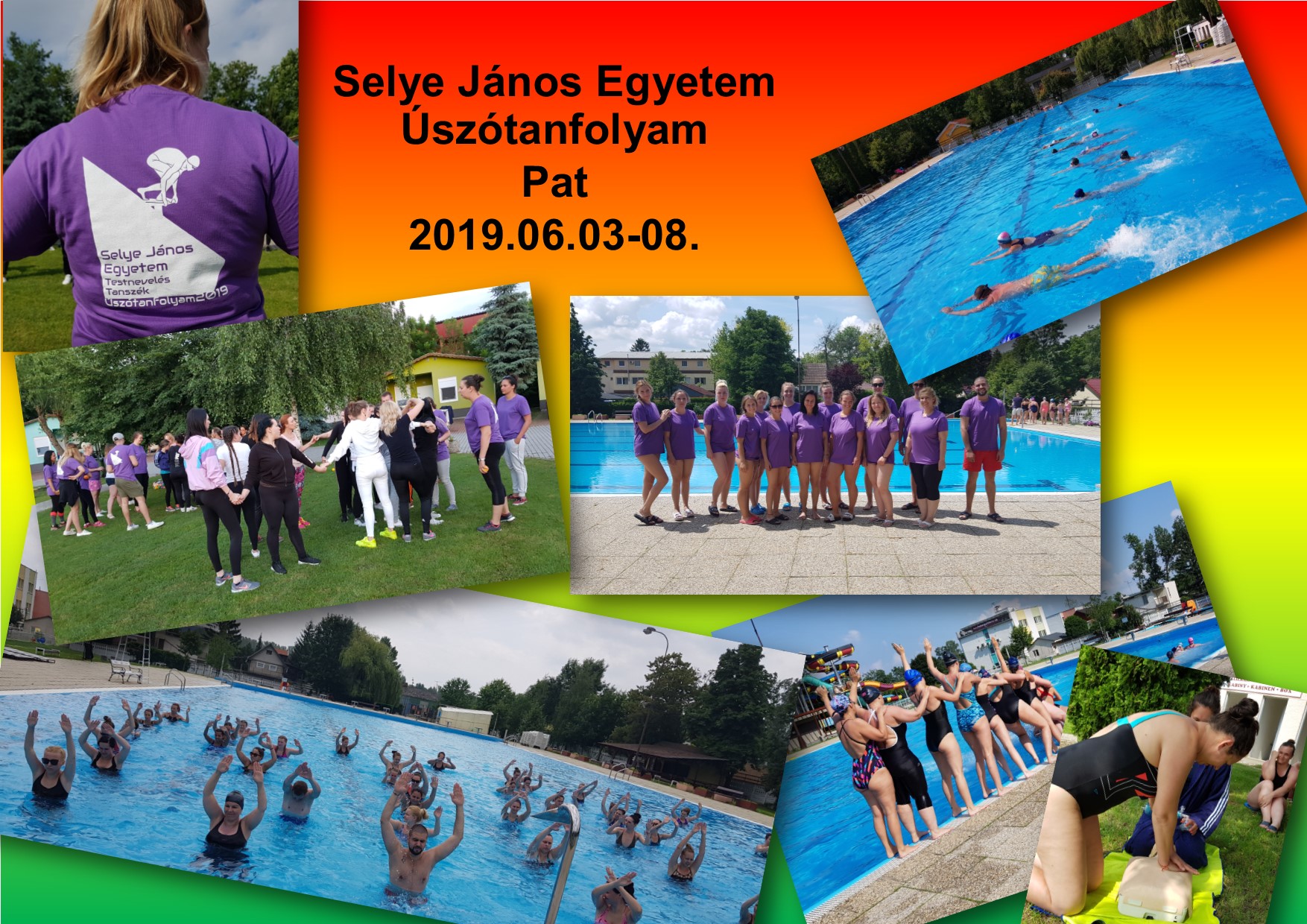 5. – 10. 06. 2017: Katedra telesnej výchovy a športu Univerzity J. Selyeho aj v tomto roku usporiadala plavecký výcvik. Vedúcou kurzu bola PaedDr. Beáta Dobay, PhD. Okrem vyučujúcich katedry Pétera Szabóa a PaedDr. Petra Žideka prednášali aj pedagógovia tuzemských a zahraničných univerzít: Dr. habil Miklós Bánhídi, PhD. – z Univerzity Istvána Széchényiho, Dr. habil Melinda Bíró, PhD. a Dr. habil. Anetta Müller,PhD. - z Debrecínskej univerzity, Mgr.Gabriel Buzgó, PhD. z Univerzity Komenského.