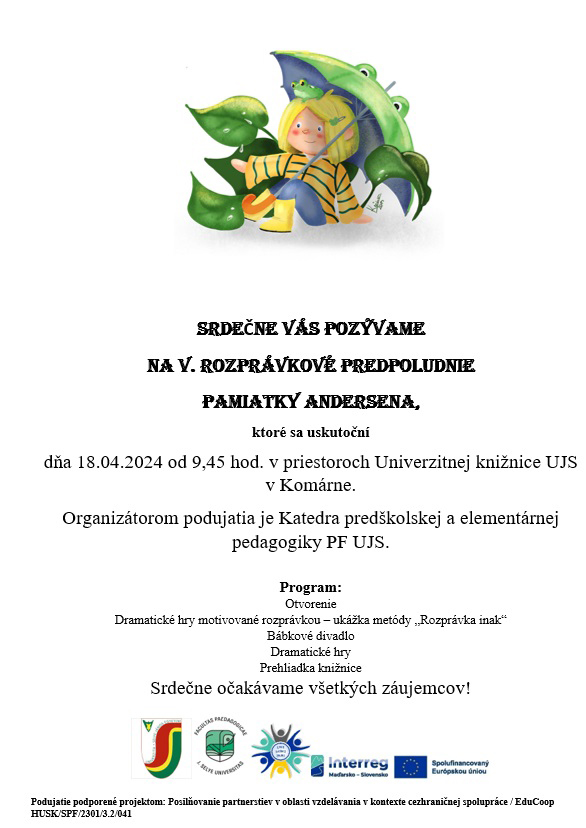 24.10.2018 Program pre najmenších: „Pohybom ku zdraviu“ na pôde Univerity J. Selyeho. Do Športového centra Univerzity J. Selyeho zavítala skupina 140 detí z miestnych materských škôl. Spoluorganizátorom podujatia bola Katedra telesnej výchovy a športu Pedagogickej fakulty UJS, OS a OÚVZ. Účastníci podujatia: Melinda Katona a Réka Posvancz, študentky prvého ročníka Predškolskej a elementárnej pedagogiky. Obsah a téma podujatia: šport, správna životospráva, racionálna strava.