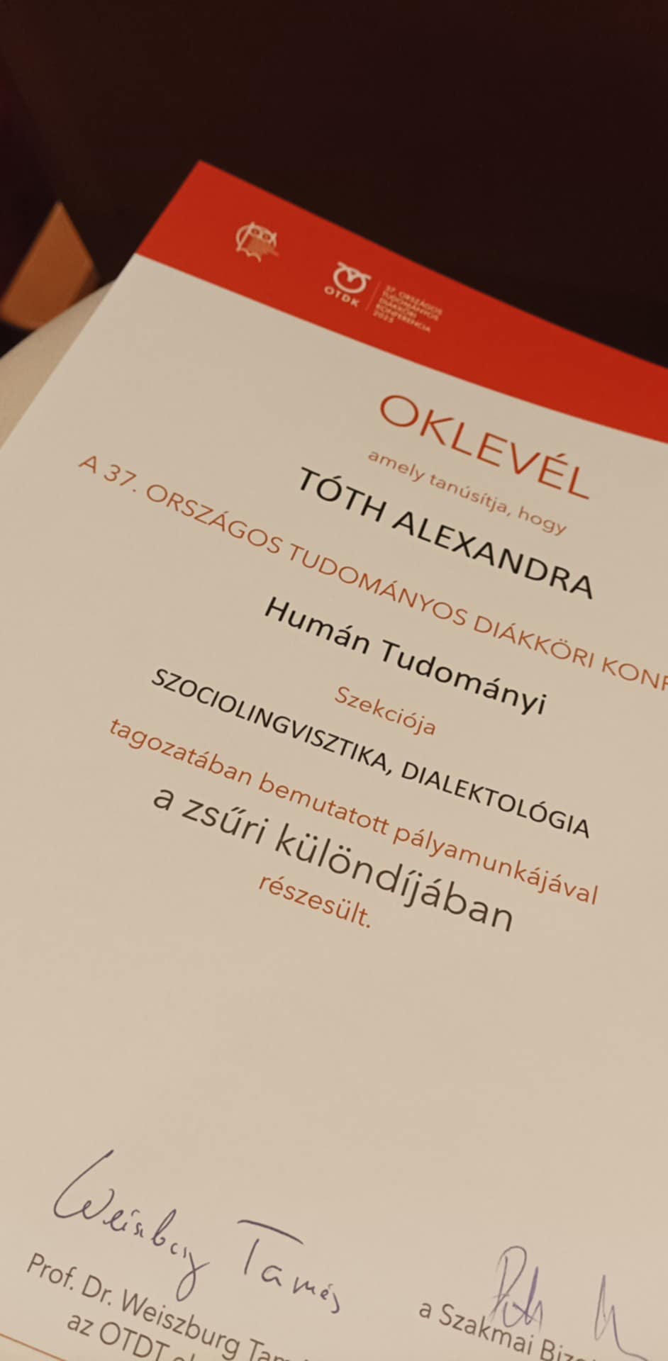3. miesto Gerencsér Bettina UJS 2. PPdb