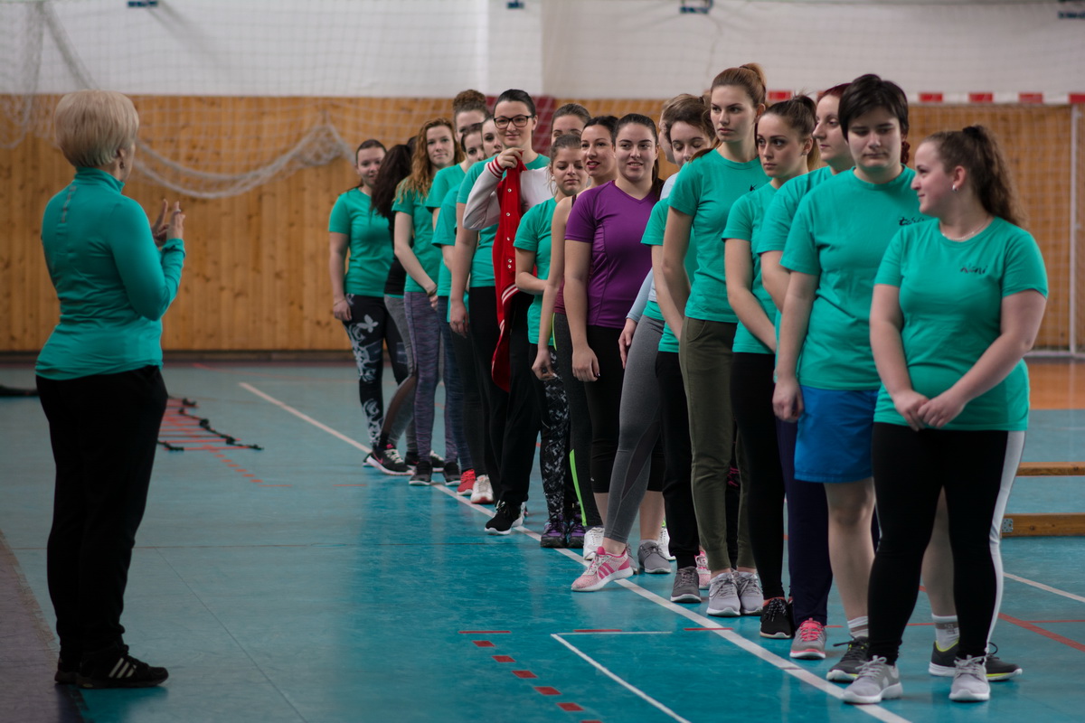Na Univerzite J. Selyeho v apríli 2018 študentky druhého ročníka predškolskej elementárnej pedagogiky absolvovali hodinu telesnej výchovy vo veľmi dobrej nálade. Študenti sa oboznámili cvičenia s švédskou lavicou. Dobrú náladu hodiny nám pripomínajú nasledovné fotografie. Fotky fotila Sabina Takács (študentka druhého ročníka).